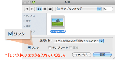 リンクにチェックを入れると、画像がリンク配置されてしまいます。ご注意ください。