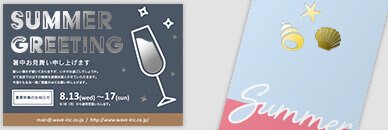 いよいよ夏本番!暑中見舞い、残暑見舞い、セール/イベント告知など、夏の挨拶状・グリーティングの作成も印刷のウエーブにおまかせください!