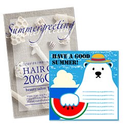 常連のお客様に夏のご挨拶状を送付。オススメメニューや割引サービス、店休日のお知らせなどをさりげなく掲載して来店を促しても◎。50部からの小部数に対応可能です。