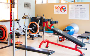 仙台事業所では社員が自由に使えるトレーニングジムや本棚、食堂などを完備しています。