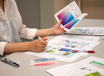 ・デザインの校正から顧客フォローまで、デザイナーのバックアップが中心の仕事です。