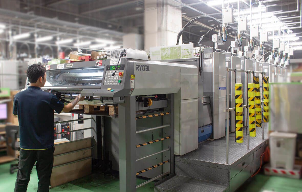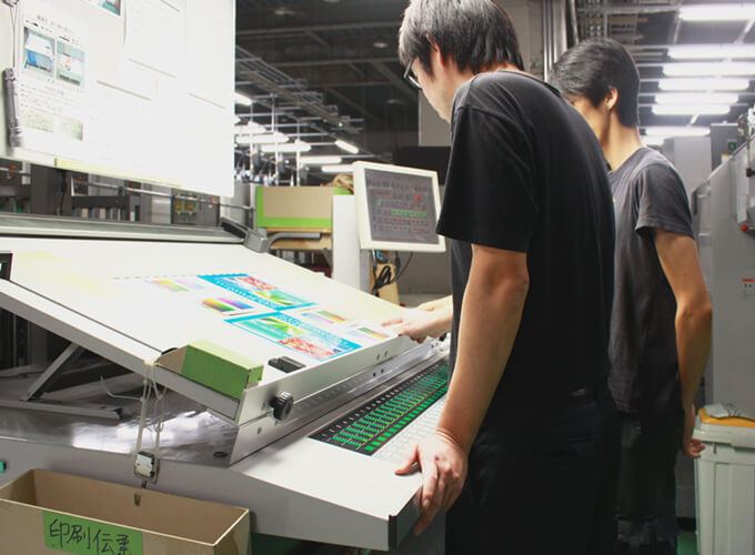 大型自動印刷機などを操り、インキやニスを使用して、紙やフィルム素材(クリアファイル)に印刷をします。