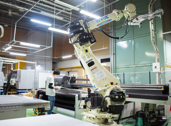 従業員数が最も多い事業所です。管理部門、製造部門(印刷・加工、ロボット・メカトロ開発部)、クリエイティブ部門があります。