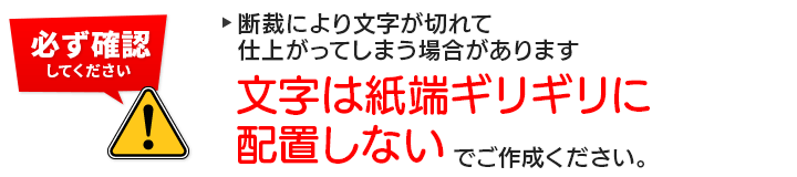 仕上がり線より3mm以上内側に配置すると、文字切れの心配はありません