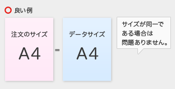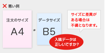 ご注文サイズとご入稿データのサイズに差異がある場合、どちらがご希望のサイズであるのか判断することができません。