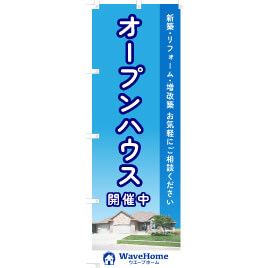 新築物件のオープンハウス開催時、物件周辺に「オープンハウス開催中」と大きく書かれたのぼり旗を複数設置するケースがあります。これにより、周辺住民や通りがかりの人々がオープンハウスの開催に気づき、関心を持つことが期待できます。特に、物件の場所が分かりにくい場合でも、のぼり旗が目印となり、来場を促す効果を発揮するでしょう。