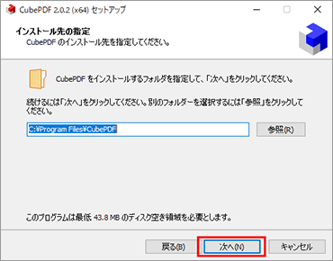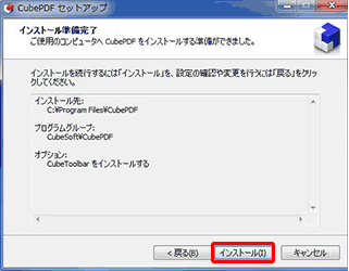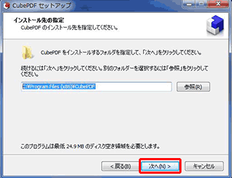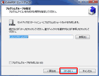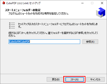 [インストール先][スタートメニューフォルダー]を指定してください。