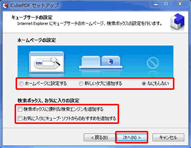 オプションが必要なければチェックボックスはオフの状態で[次へ]をクリックします。