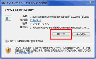 ご利用の環境によっては警告が表示されることがあります。[実行][はい]をクリックして次へお進みください。