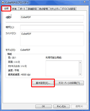- [CubePDFのプロパティ]→[デバイスの設定]