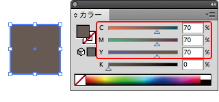 CMYカラーのみで作成せずに、「K」を混ぜて作成してください