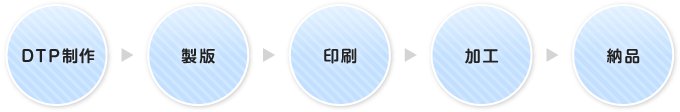 オフセット印刷商品は、DTP制作(デザイン・版下制作)、製版作業、印刷作業、加工作業を経て、お客様へ納品されます。