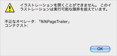Illustrator10で保存されたデータを開いた際、「イラストレーションを開くことができません。このイラストレーションは実行可能な限界を超えています。」とエラー表示される場合があります。