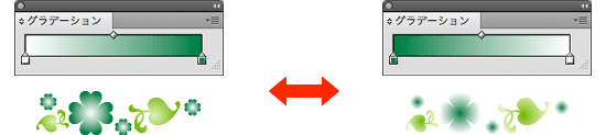 場合によっては、正常に保存されていないことが原因で、グラデーション効果の設定が反転するなどの場合もございますのでご注意ください。
