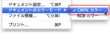 - [ファイル]→[ドキュメントのカラーモード]→[CMYKカラー]