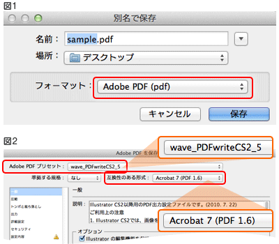 - [互換性のある形式]:Acrobat 7 (PDF 1.6)