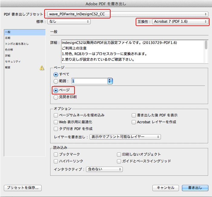- [互換性]:Acrobat 7 (PDF 1.6)