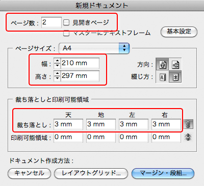 - [ページサイズ]:A4(仕上がりのサイズ)