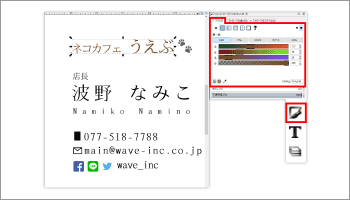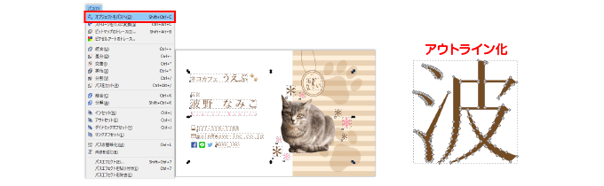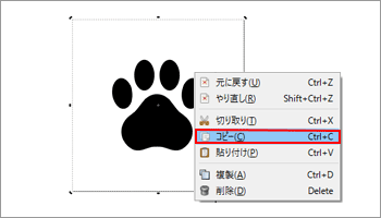 選択ツールで素材を選択>右クリック>[コピー]で素材をコピーします。 コピー後は、名刺のページへ移り、右クリック>[貼り付け]を選択します。