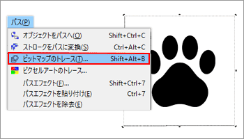 足跡の素材は、ペーストした後は色の変更ができるよう[ビットマップのトレース]でオブジェクト化を行います。