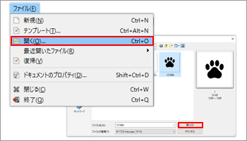 別にダウンロードした素材を開きます。メニューより[ファイル]>[開く]>[素材を選択] 別ファイルを開く場合、同じページ内には表示されません。