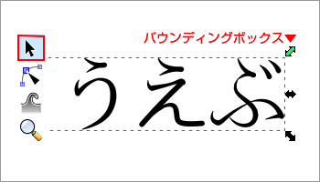 [選択ツール]でテキストを選択すると、四方に拡大・縮小・回転ができるバウンディングボックスが表示されます。