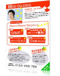 ここではマイクロソフト社Office Wordを使用して制作イメージ(図:右)の様なフライヤー(チラシ)の印刷データの制作の基本からノウハウ、コツを分かりやすくご説明いたします。