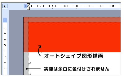 - オートシェイプの図形(四角等)で配置し塗りつぶしの設定で背景色をつけます。