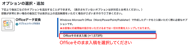 データ変換オプションの入稿形式「Officeそのまま入稿」を選択してください。