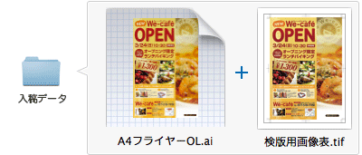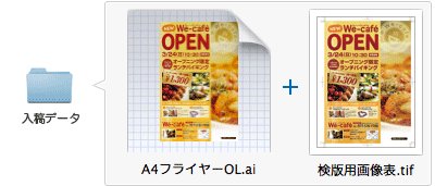 弊社指定の設定で書き出した「検版用画像(TIFFもしくはJPEG)」をご入稿ください