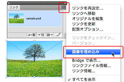 - [ウィンドウ]→[リンク]→[リンクオプション]→[画像を埋め込み]