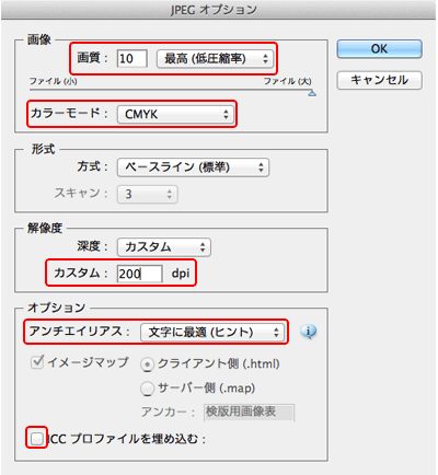- [アンチエイリアス]:文字に最適(CS5以降)