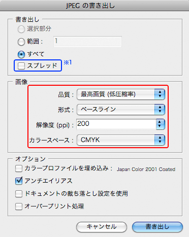 書き出しオプションの設定