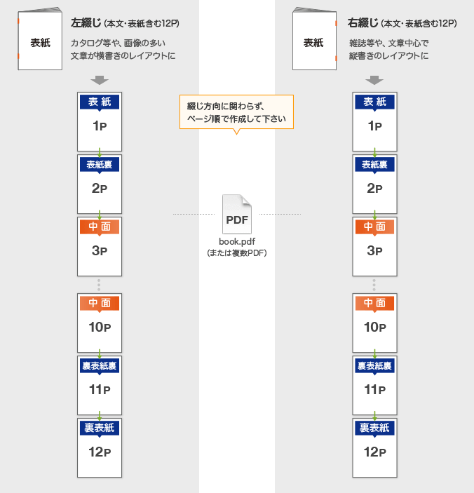 - ひとつのPDFファイル内に複数ページをまとめた状態でご入稿される場合はページ順をご指示ください。