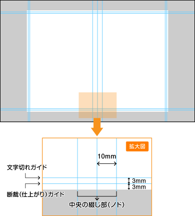 - 作成した断裁(仕上り)ガイドより3mm内側に作成