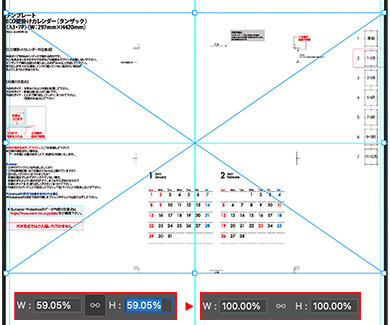 - 初めに配置した際は、アートボードに収まるよう縮小されています。縦横比が100%になるように数値を修正してください。