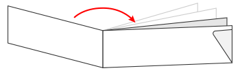 折り目ちょうどで切り替わるデザインの場合、折り加工のズレにより、デザインが回り込むおそれがあります。