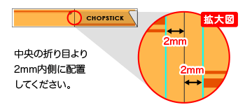箸袋印刷のテンプレート内に「展開図」と「データ作成時の注意点」を記載しておりますので、必ずご確認ください。