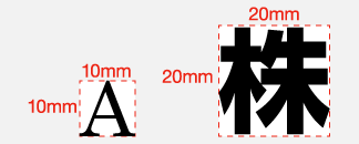 [漢字・ひらがな・カタカナ] → 最小20mm角