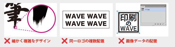 - 細かく複雑なデザイン(輪郭がギザギザしている、筆文字のようなかすれなど)は再現することができません。