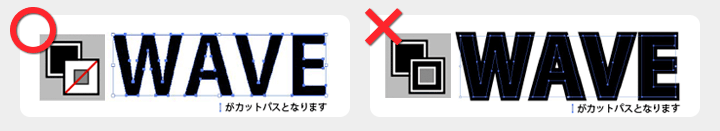 商品はカットパスで仕上げますので、線に色が設定されていると仕上がりイメージに差が生じてしまいます。