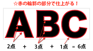 右図の場合「C」の様に一筆書きに閉じられたパス(クローズパス)を1点と数えます。