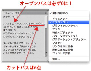 データ作成後は必ずパスの本数を数えてください。また、パスは全て閉じられたパス(クローズパス)にして頂く必要がございます。