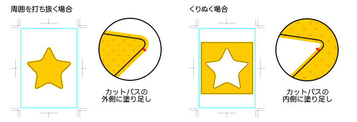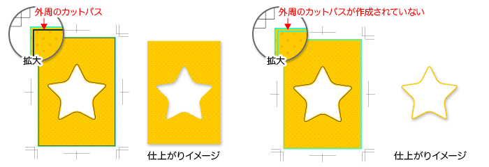 外周のカットパスが作成されていない場合、予期せぬ仕上がりとなる場合があります。ご注意ください。