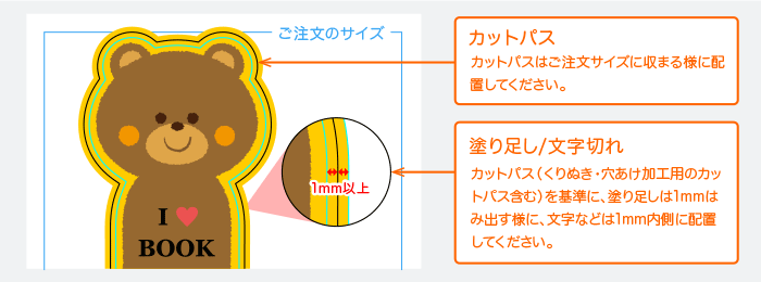 【文字切れ】 重要な文字や画像はカットパスより1mm以上内側に配置してください。
