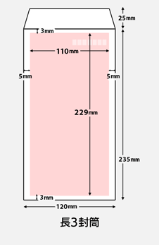 | 長3封筒 | 幅:110mm × 高さ:229mm | (袋部分に対して) 上下3mm・左右5mm |