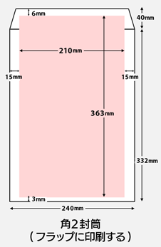 刷り込み封筒印刷は、長3封筒・角2封筒それぞれで印刷可能領域が決まっています。
