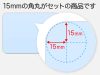 R(半径)が15mmの角丸加工がされることで、四隅の角付近に配置されている文字が切れてしまう場合があります。