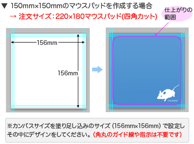 - 150mm×150mmに塗り足し(上下左右3mmずつ)を足したサイズでカンバスサイズを設定し作成します。