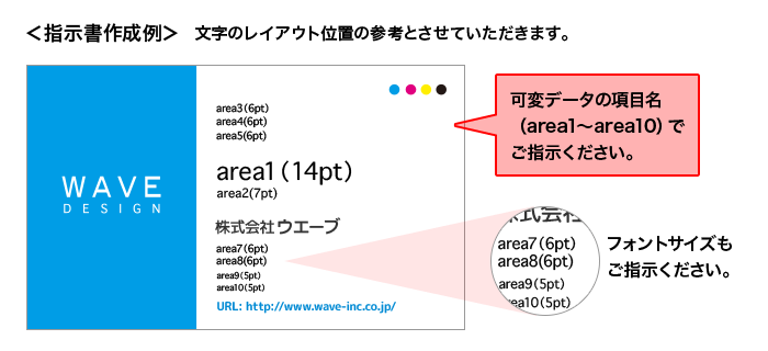 - 項目指示書には、テキストの大きさ(pt)をご明記ください。文字のサイズは6pt以上を推奨いたします。